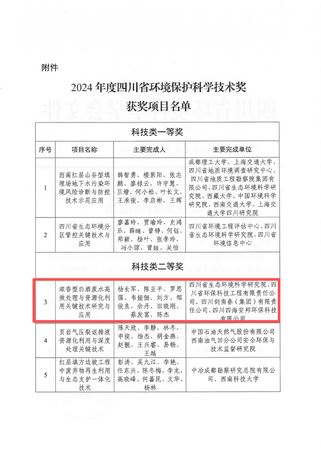 喜報!環科工程榮獲2024年度四川省環境保護科學技術獎