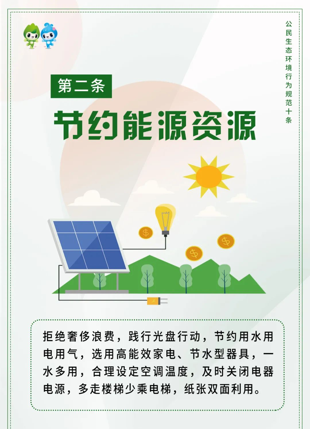 世界環境日的由來 20世紀60年代起,全球環境問題日益凸顯,如污染、資源破壞等,引起國際社會關注。1972年6月5日,聯合國在瑞典斯德哥爾摩召開首次人類環境會議,會議通過《人類環境宣言》,并決定將每年6月5日定為“世界環境日”。 公民生態環境行為規范十條