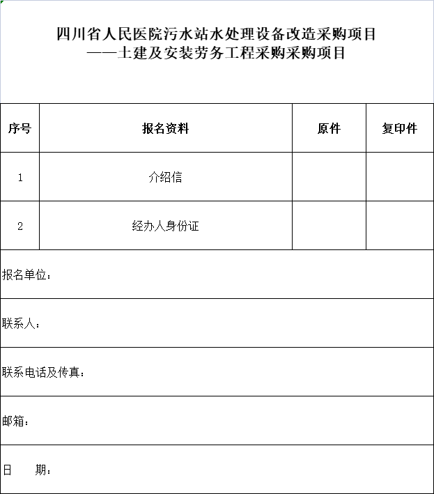 項目名稱:四川省人民醫院污水站水處理設備改造采購項目——土建及安裝勞務工程采購項目(第二次)